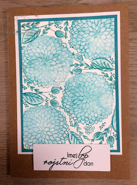 Tokrat sem se potrudila in osnovo za voščilnico izdelala sama, seveda v mint barvi. Piko na i voščilnici pa da notranjost, ki je večkrat zanemarjam, kjer sem še enkrat odtisnila šopek rož.
